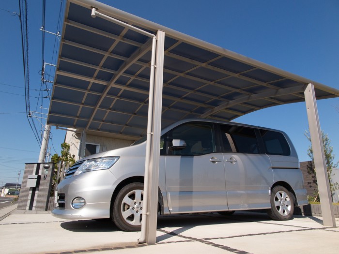 カーポートの大きさは、止める車の大きさによって変わります。また、駐車方法が車庫入れ方式か幅寄せ式かによっても取るべき大きさが変わってきます。